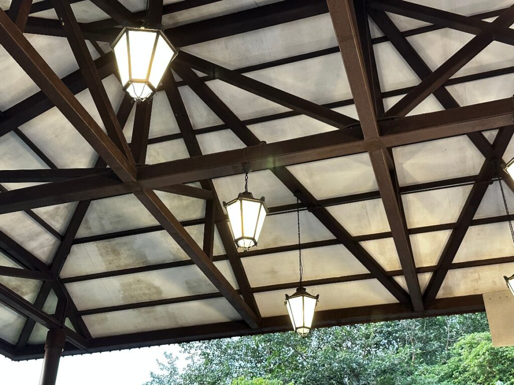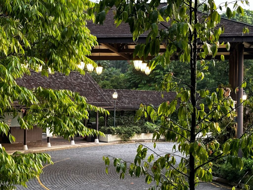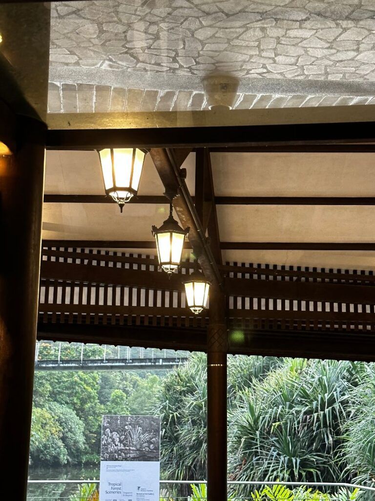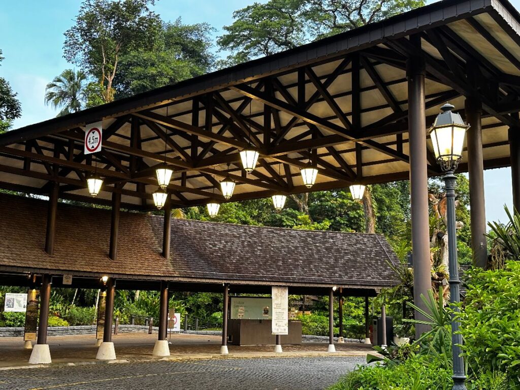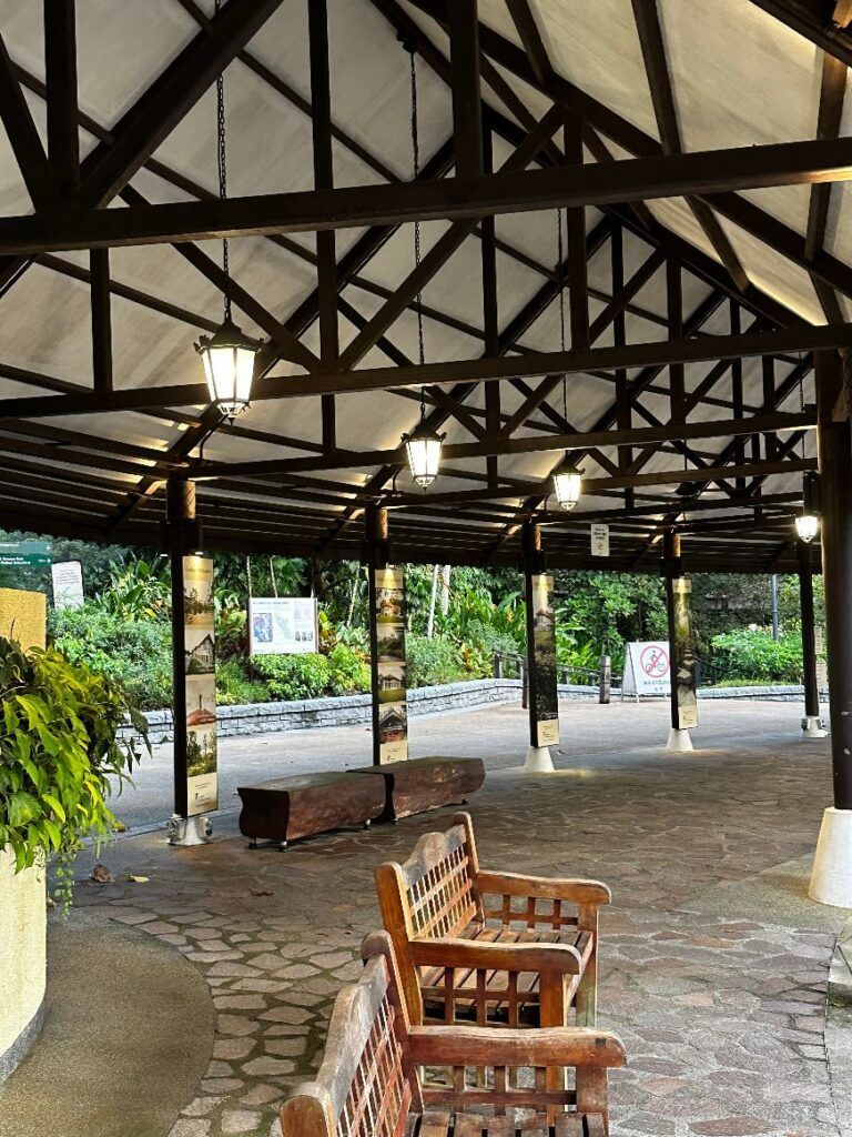 Entrada Tanglin Gate para os Jardins Botânicos de Singapura. Visível a estrutura de madeira do telhado com lanternas suspensas em estilo colonial, sinal de limitação de altura a 4,5 metros e vegetação tropical ao fundo. No centro, placa informativa para os visitantes. À direita, lanterna clássica de jardim. Espaço de descanso em Singapura sob um telhado com uma estrutura de madeira decorada. Sob o teto, há candeeiros clássicos em forma de lanterna, que emitem uma luz quente. Entrada Tanglin Gate para os Jardins Botânicos de Singapura. Visível a estrutura de madeira do telhado com lanternas suspensas em estilo colonial, sinal de limitação de altura a 4,5 metros e vegetação tropical ao fundo. No centro, placa informativa para os visitantes. À direita, lanterna clássica de jardim. Espaço de descanso em Singapura sob um telhado com uma estrutura de madeira decorada. Sob o teto, há candeeiros clássicos em forma de lanterna, que emitem uma luz quente. Um espaço de relaxamento em Singapura, sob um toldo com uma estrutura de madeira ornamentada. Candeeiros clássicos pendurados no teto, emitindo uma luz aconchegante. Singapur Singapur
